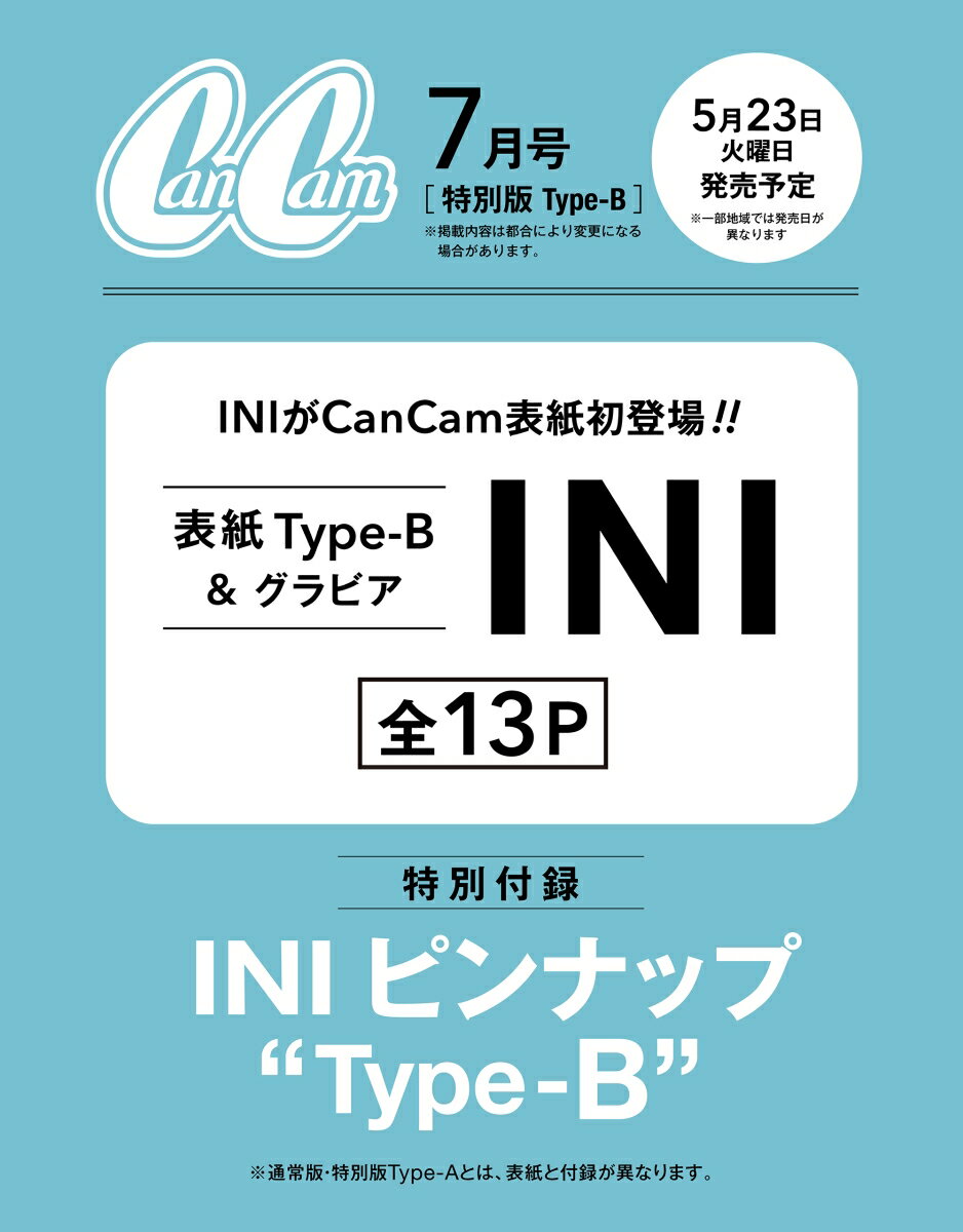 | CanCam(キャンキャン) 2023年 7月号 [雑誌] 特別版 Type-B【表紙: INI(Type-B)】 | ||