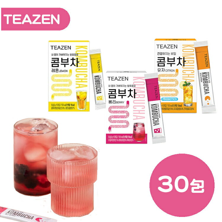 | 【30包 箱無し 簡易包装】コンブチャ 韓国 teazen レモン味 ベリー味 ゆず味 昆布茶 こんぶちゃ こんぶ茶 コンブ茶 乳酸菌 12種 プレバイオテックス 腸内有益金菌 健康飲料 発酵 低カロリー ゼロ シュガー 糖質0g 低カフェイン アルコール0% スティック | ||