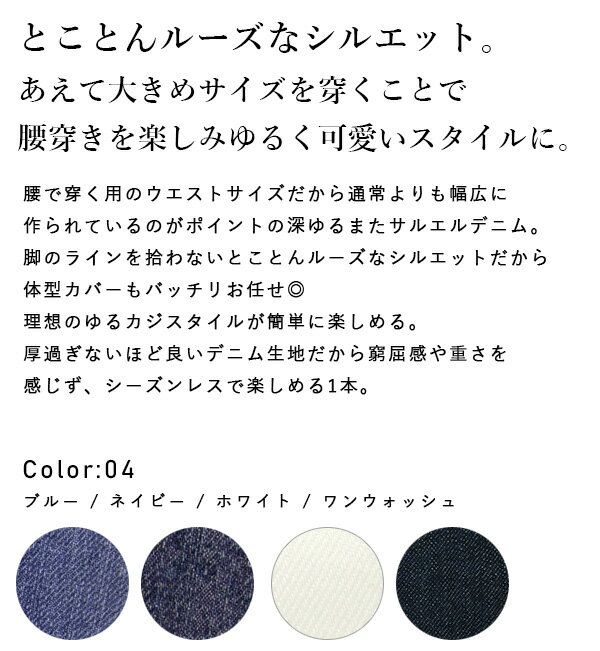 | 【クーポンで2690円 6/27 11:59まで】デニム パンツ レディース 深ゆるまたサルエルデニムパンツ デニムパンツ 綿100% コットン サルエル ワイドパンツ サルエルパンツ ジーンズ デニム ボーイフレンドデニム パンツ ゆったり S M L LL 3L 4L メール便不可 | ||