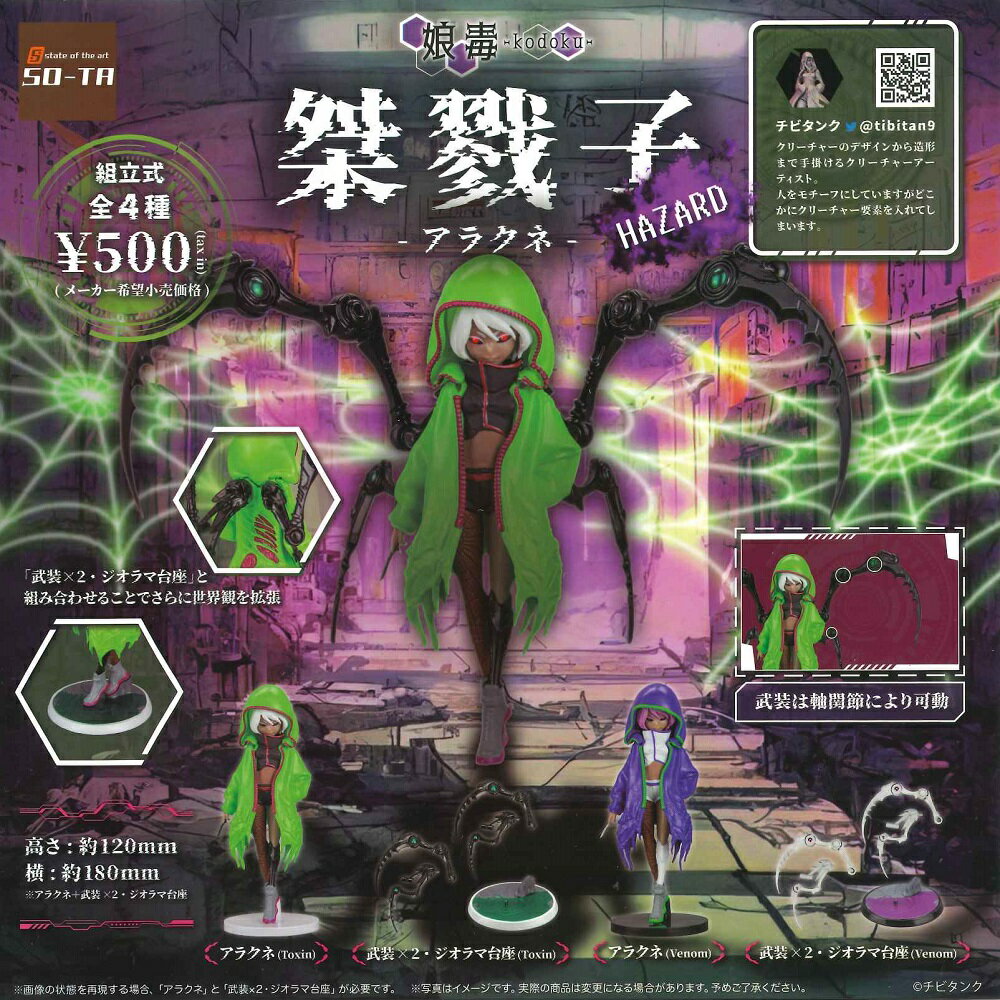 SO-TA 桀戮子 -アラクネ- HAZARD 【全4種セット】 新品・未開封品 武装は軸関節により可動! 【セット内容】 アラクネ(Toxin) 武装×2・ジラオマ台座(Toxin) アラクネ(Venom) 武装×2・ジラオマ台座(Venom)