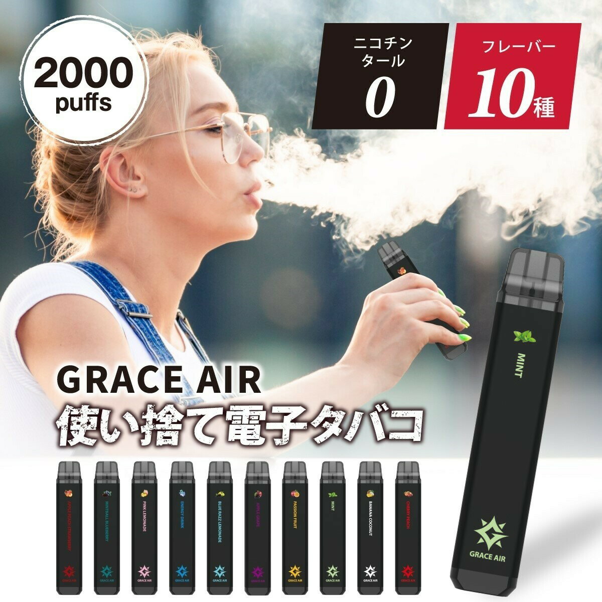 | 電子タバコ シーシャ 2000回吸引 電子VAPE 水蒸気タバコ 持ち運びシーシャ 禁煙パイポ 使い捨て ニコチンゼロ VAPE ベイプ フレーバー リキッド 水タバコ ビタミンタバコ 電子煙草 使い捨てタイプ ニコチン0 タール0 禁煙グッズ 禁煙 GRACE AIR 10種類フレーバー | ||