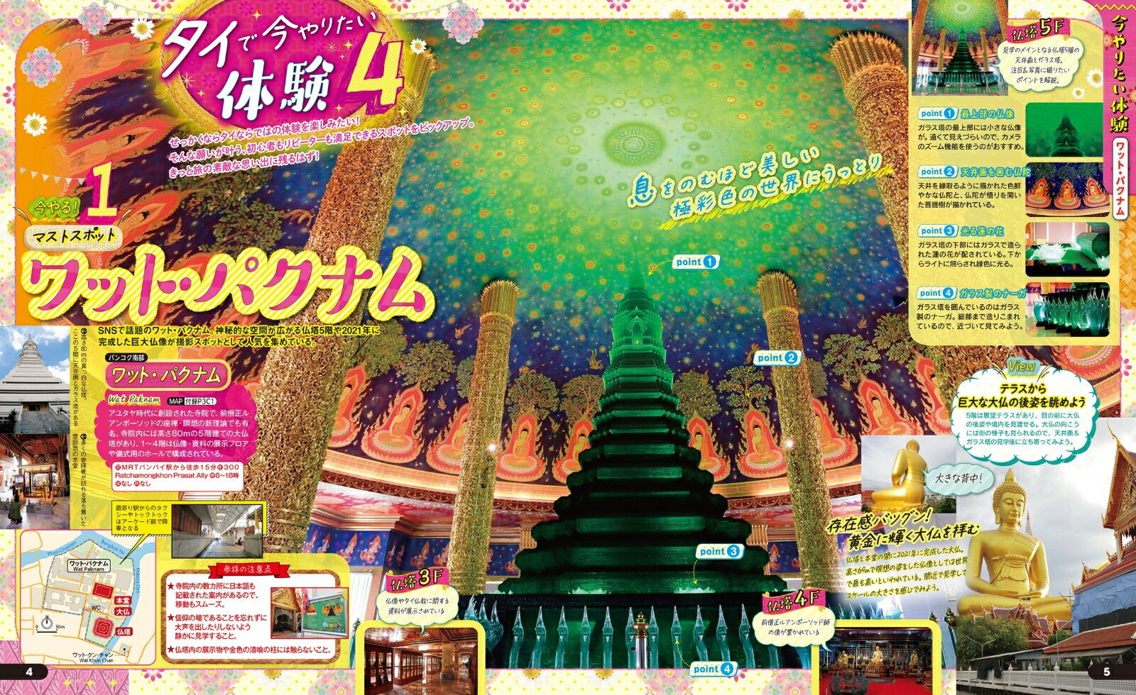 王宮と三大寺院/人気SNS映え寺院(ワット・パクナムほか)/アジアティーク/ジョッド・フェアーズ/街なかフォトスポット/話題のアートスポット/巨大ランドマーク