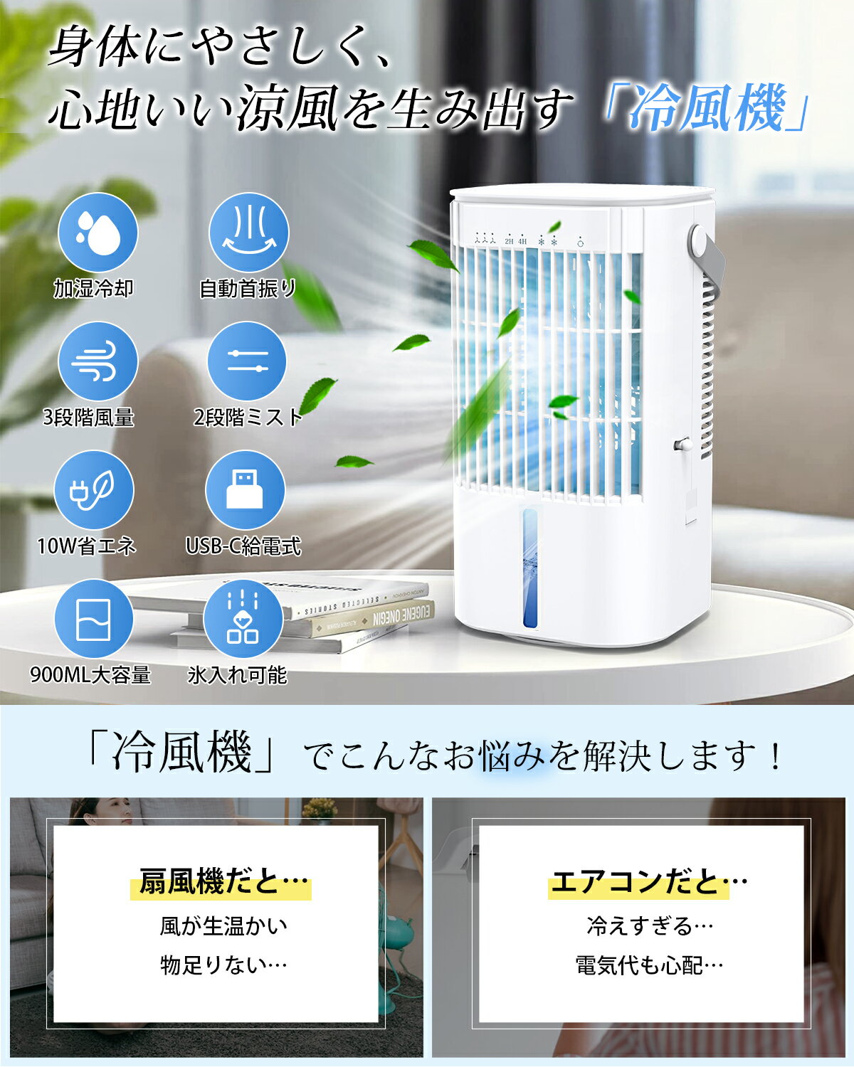 クーラーが苦手な方にもおすすめ 体にやさしい心地良い涼風 冷風扇 送料無料
