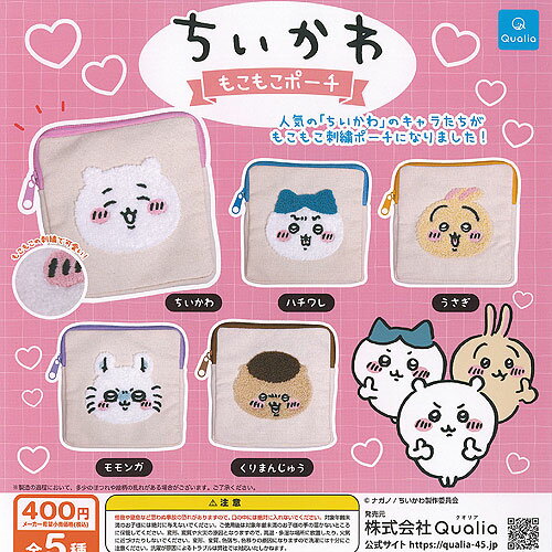 | ちいかわ もこもこ ポーチ 全5種セット Qualia ガチャポン ガチャガチャ コンプリート | ||