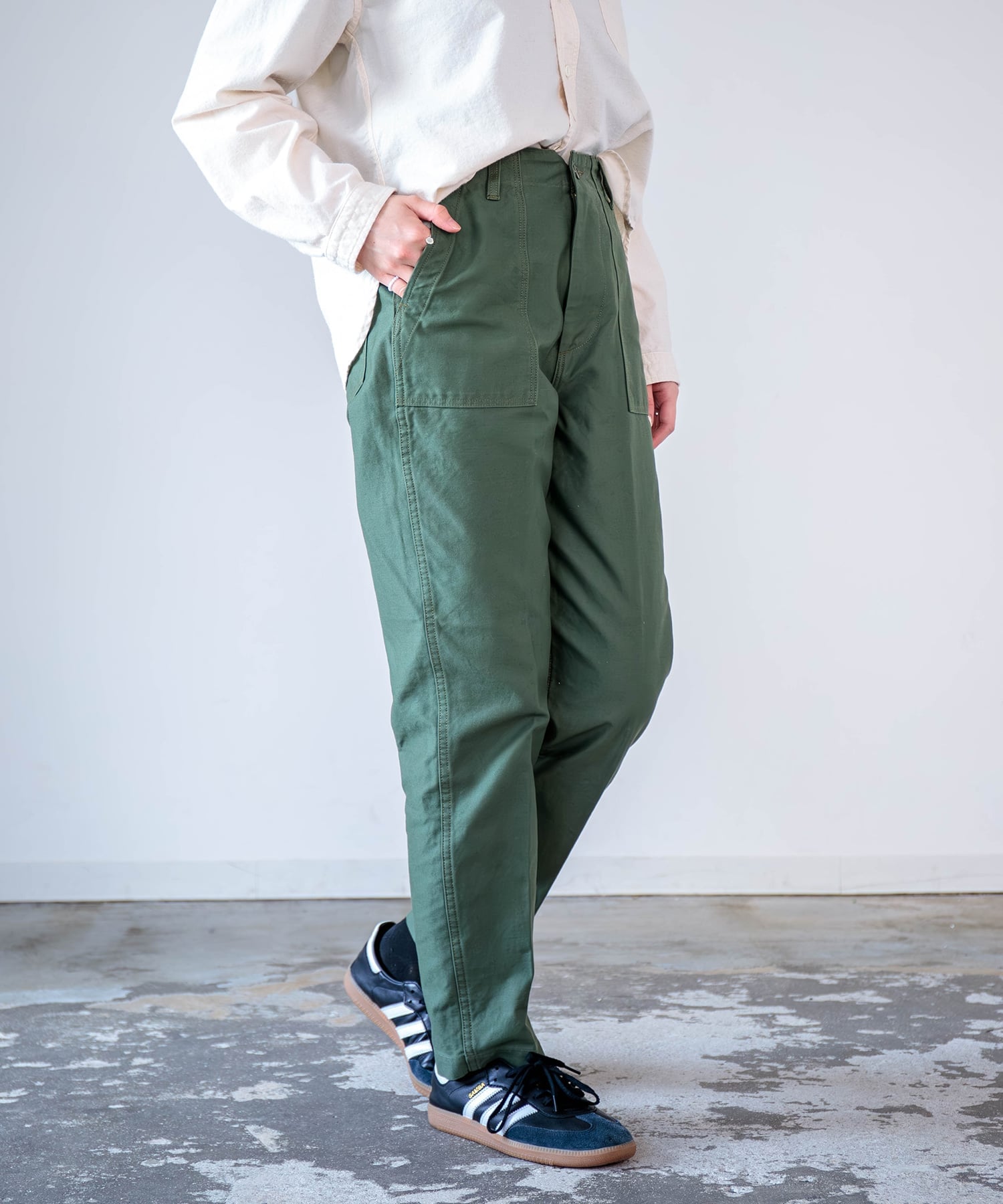 | D.M.G. バックサテンベイカーパンツ ドミンゴ パンツ その他のパンツ グリーン【送料無料】 | ||