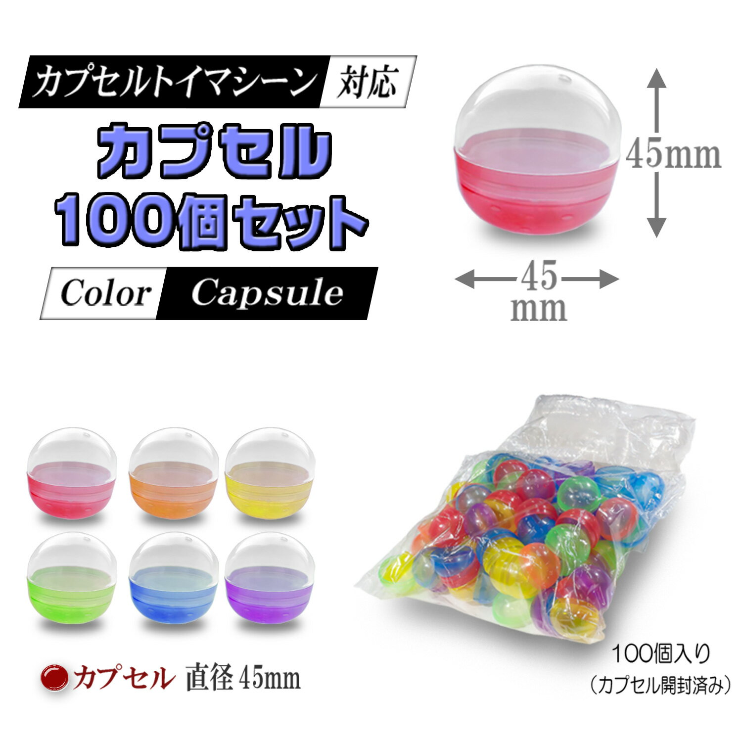 直径45mmカプセル対応マシン カラーは数種類の混合! ガチャガチャに必需品の空カプセルが100個でお買い得!お好きな景品を入れてお使い下さい。