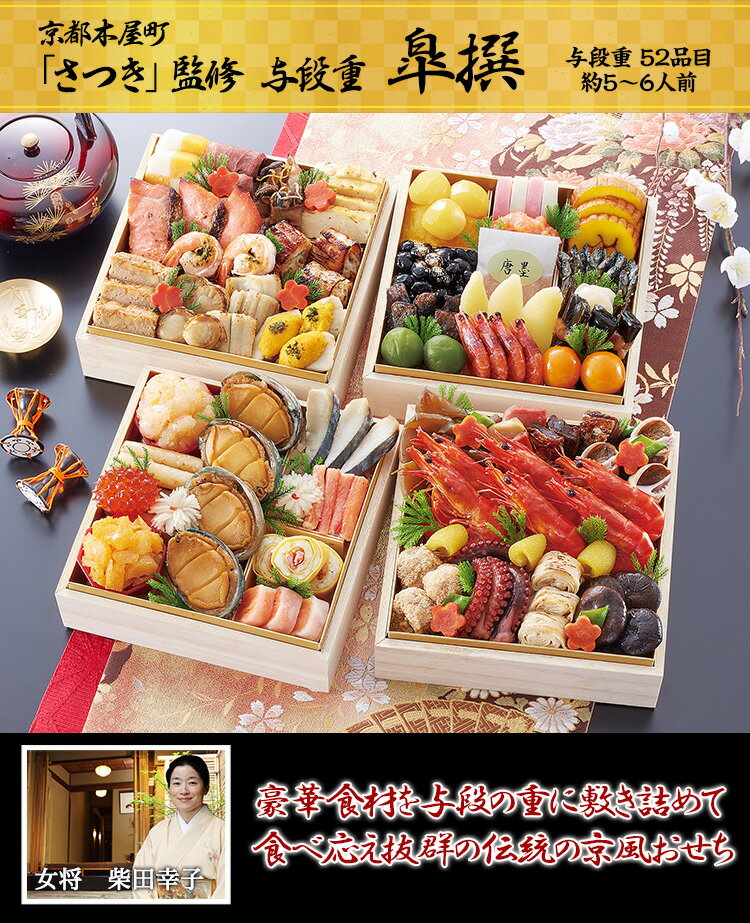 | 【ポイント必ず5倍!】【早割第2段スタート!300円クーポン有】冷蔵 6.5寸与段和風おせち 【52品目・5~6人前】 京都木屋町「さつき」監修与段重 皐撰 【送料無料】2024年 お正月 お節料理 予約 冷蔵おせち お節 御節 冷蔵【11/20 23:59迄】 | ||
