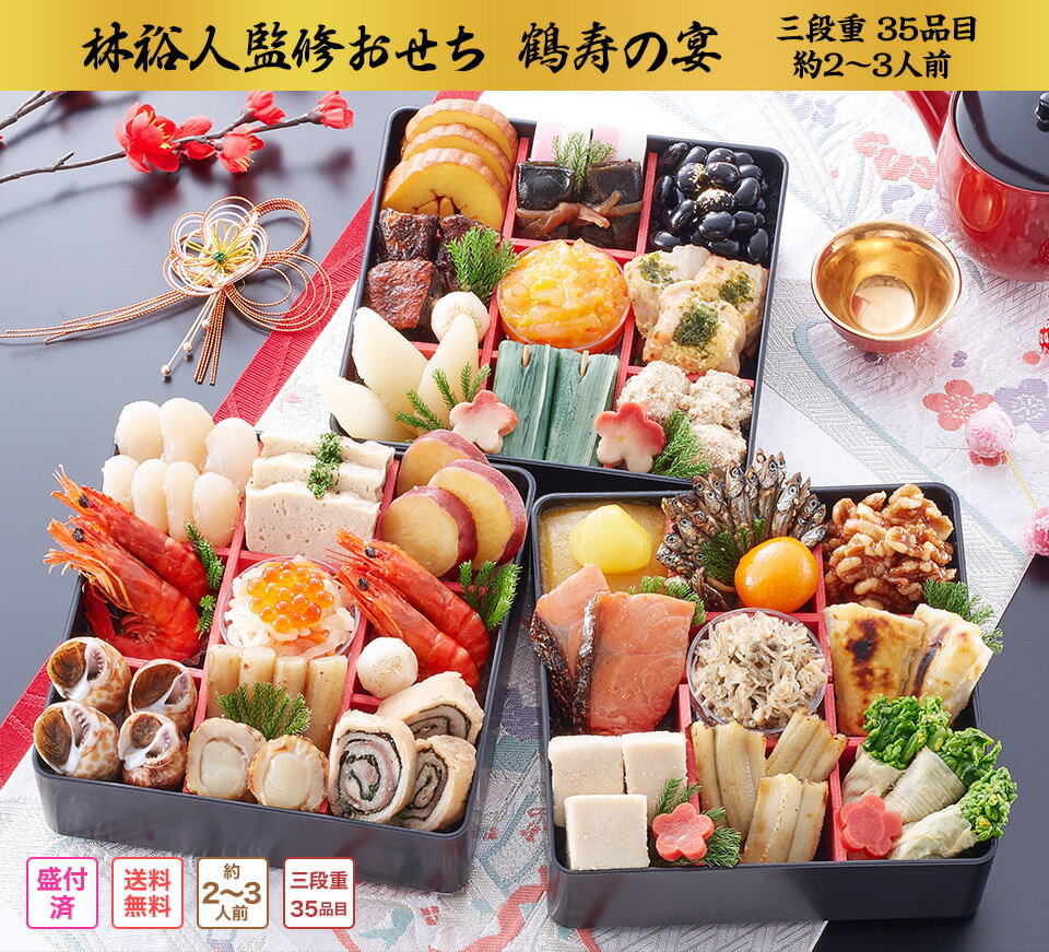 | 【ポイント必ず5倍!】冷蔵 5.5寸三段おせち 【35品目・2~3人前】 林裕人監修おせち 鶴寿の宴 【送料無料】2024年 お正月 お節料理 予約 冷蔵おせち お節 御節 冷蔵【11/20 23:59迄】 | ||
