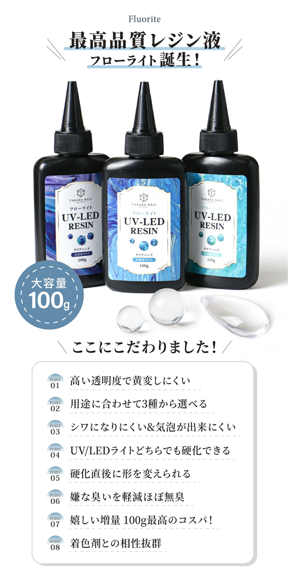 | 【11/21 20時〜11/27 10時 限定価格】レジン液 100g フローライト コスパ最高 高品質レジン液 大容量 超透明 低粘度 中粘度 高粘度 【メール便対応】レジン液ハード UV/LEDレジン液 レジンクラフト ハンドメイド 手作り 手芸 | ||