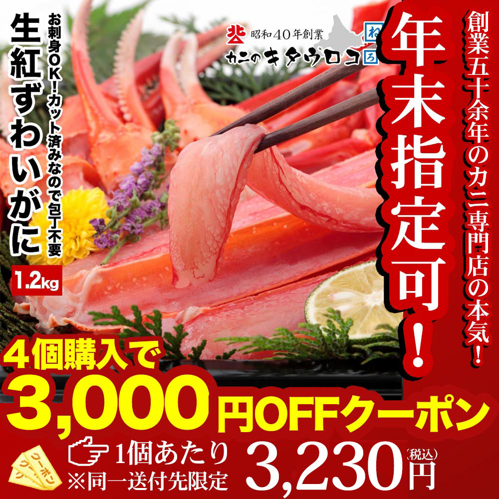 | 23:59迄P3倍★お急ぎ下さい 12/18迄クーポンで11400円★5400円OFF 2個で11000円OFF 送料無料 最大3kg★選べるメガ盛元祖カット済生ずわい蟹or生棒ポーションor爪下肩肉3kg かに カニ むき身 鍋 カニしゃぶ お歳暮 お取り寄せ ギフト クリスマス グルメ プレゼント ズワイガニ | ||