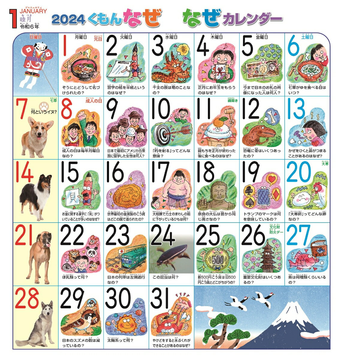 weeksdaysの日めくりカレンダー20242024年1月~12月
