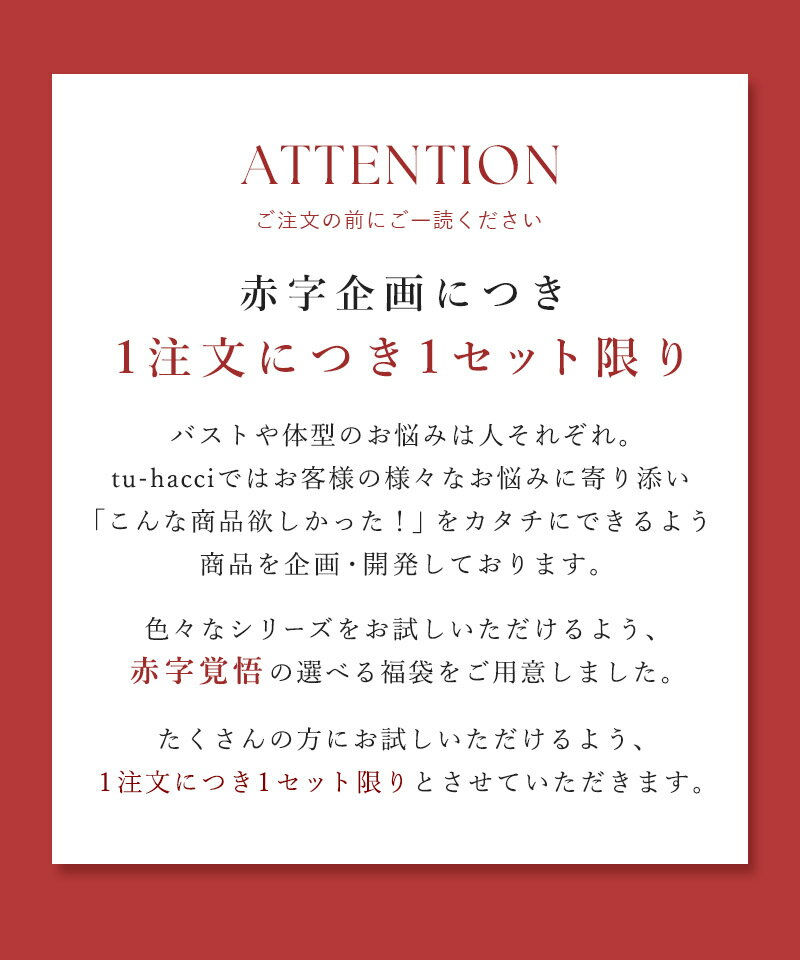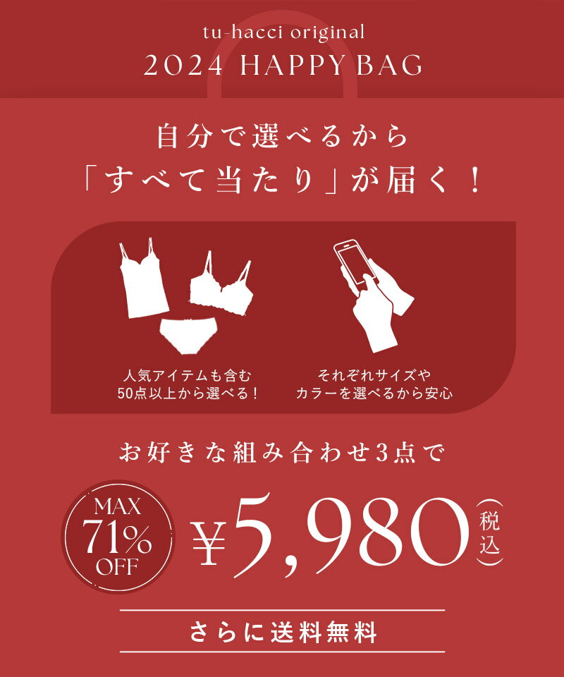 | 【先着500名】お好きな福袋2点で1,000円OFFクーポン【自分で選べる福袋チケット】2024 福袋 下着 レディース インナー ナイトブラ ブラトップ ブラキャミ ブラ&ショーツ ノンワイヤー 上下セット ガードル 補正下着 コルセット【チケット同梱忘れ無効】【tu-hacci】 | ||