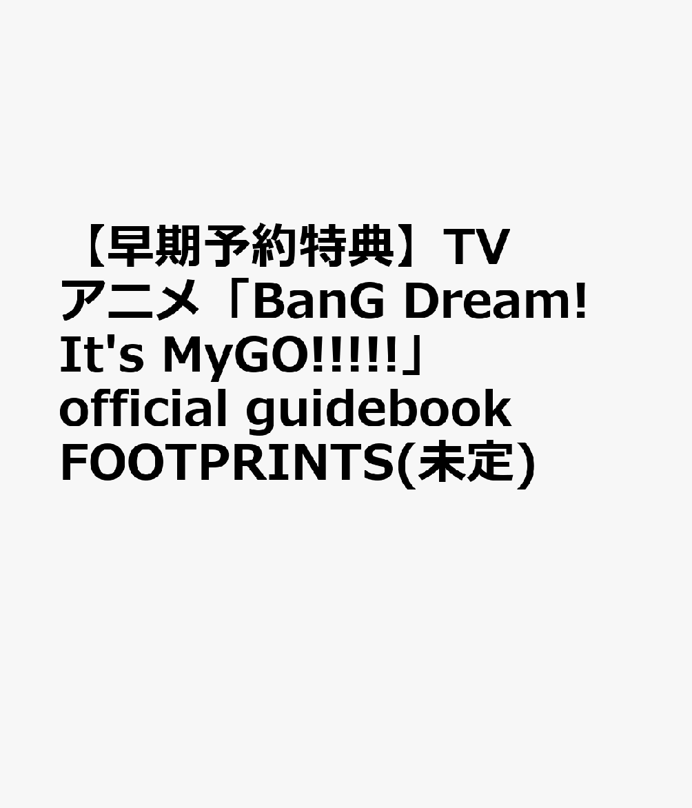 | 【早期予約特典】TVアニメ「BanG Dream! It’s MyGO!!!!!」official guidebook FOOTPRINTS(未定) TVアニメ「BanG Dream! It’s MyGO!!!!!」official guidebook FOOTPRINTS | ||