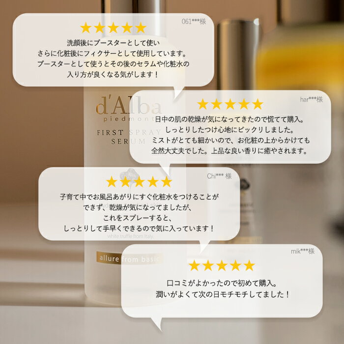 | 【 d’Alba ( ダルバ ) 公式 】【 ホワイトトリュフスプレーセラム 100ml 2本セット 選べる3種】保湿ミスト スプレー スキンケア 美容液 保湿 弾力 韓国コスメ 韓国 しっとり 低刺激 乾燥 弾力 ツヤ肌 敏感肌 JP REVIEW dAlba dalba_SS | ||