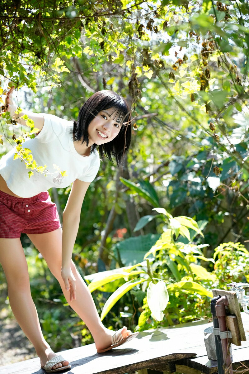 笑顔が素敵な彼女に似合う爽やかで元気溢れるカットももちろんだが、時折見せる大人びた表情にグッと惹き込まれること間違いなし!何気ない日常の中でも一挙一動が可愛い彼女だから織りなす素敵な写真集になっています!