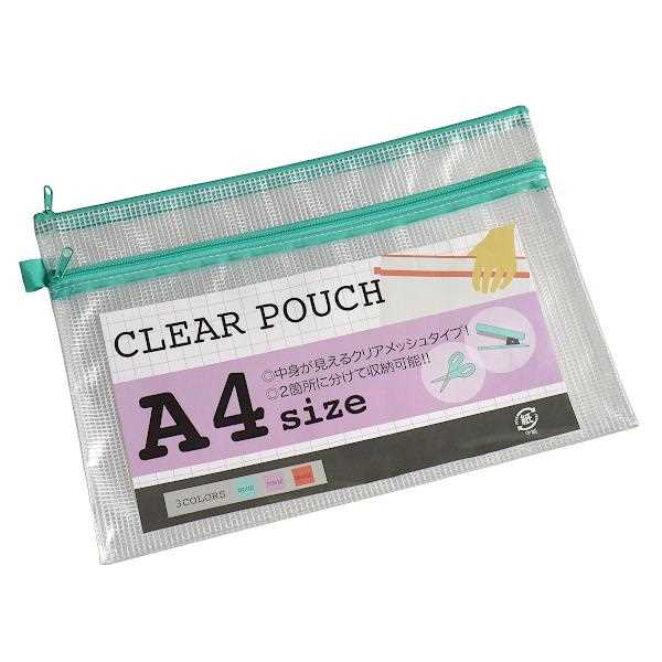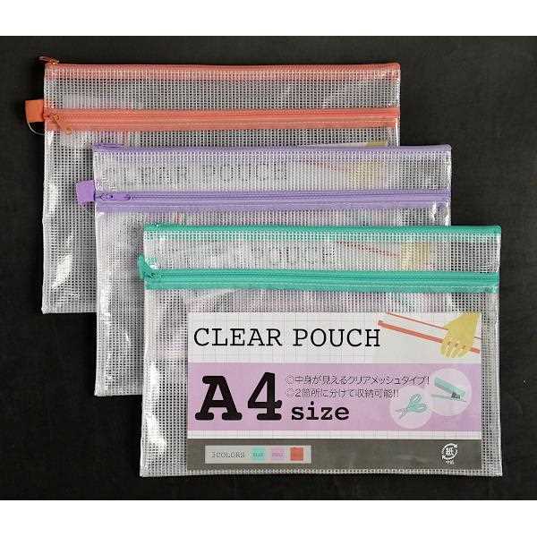 | クリアポーチ メッシュタイプ A4サイズ収納可 33.5×23.5cm [色指定不可] (100円ショップ 100円均一 100均一 100均) | ||