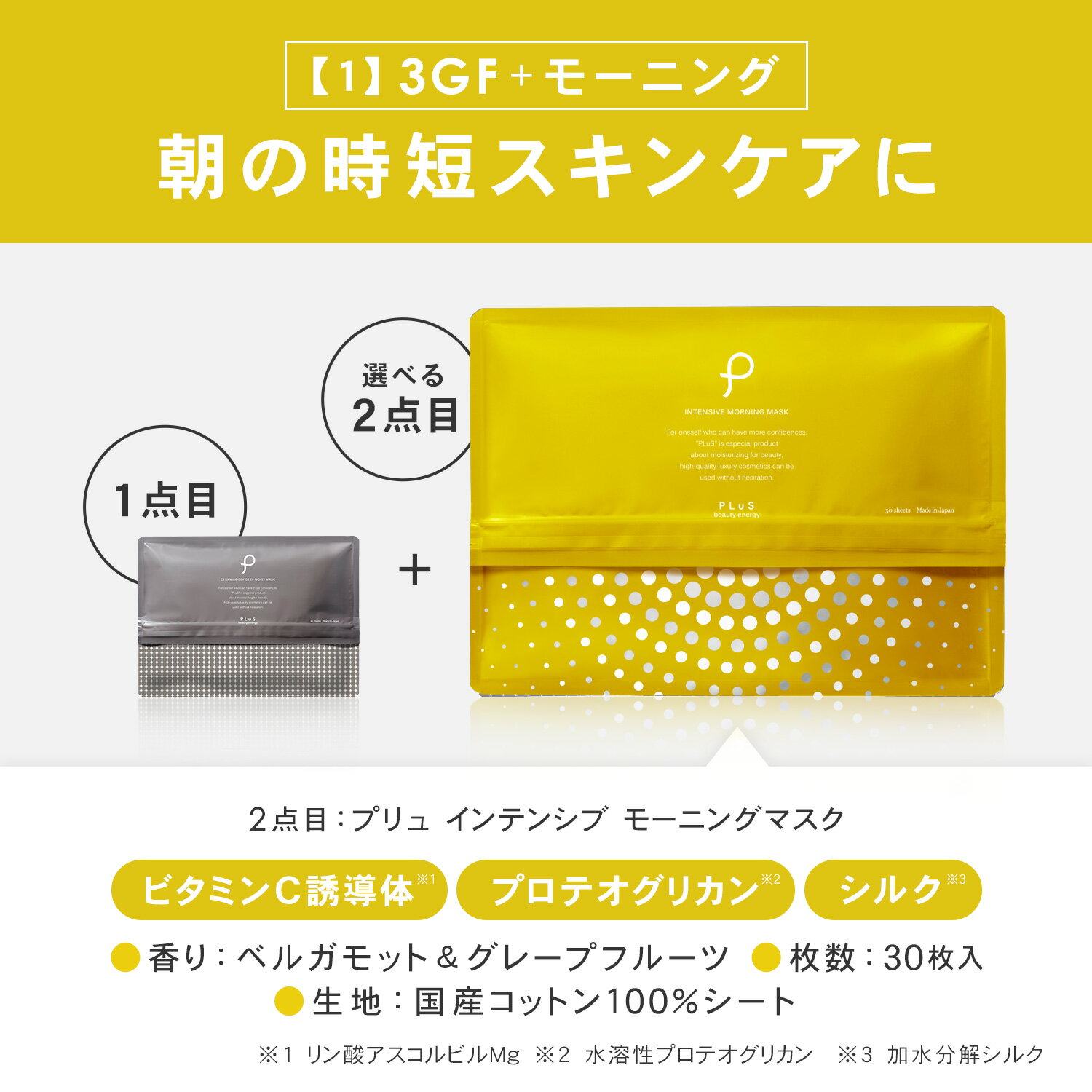 | 【半額1,000円(クーポン利用&1点あたり)】パック シートマスク 大容量 ビタミンC誘導体 レチノール セラミド 夜 フェイスマスク フェイスパック 顔パック プレゼント 大容量 ナイトケア 日本製 [プリュ (PLuS) インテンシブ ナイトマスク(30枚入)]ZZ【プリュ公式】 | ||