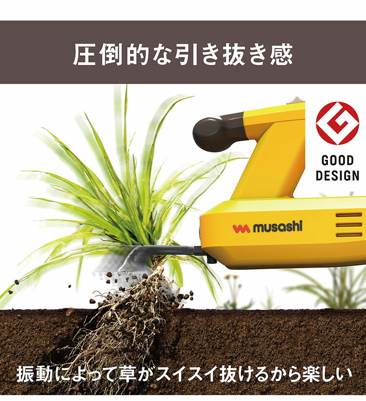 充電式 根こそぎ除草 バイブレーター コードレス 草取り 草むしり 草抜き 草刈 雑草取り 電動 草刈り機 草抜き機 電動草刈機 ガーデニング 庭 雑草 対策 便利 除草 バイブレータ ムサシ WE-750