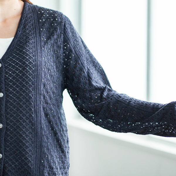 | ★春夏頼りになる、エレガントで清涼感あるレース編み日本製カーディガン[あす楽対応] | ||