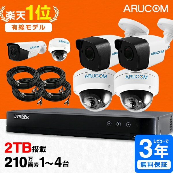[P10倍★楽天1位★送料無料] 高品質 防犯カメラ 1台~4台 セット 官公庁採用 屋外 屋内 有線 210万画素 防犯カメラセット 2TB HDD レコーダー 録画機 ハードディスク 室内 店舗 夜間 防水 ドーム 監視カメラセット スマホ 監視カメラ 駐車場 車上荒らし 業務用 SETR-200