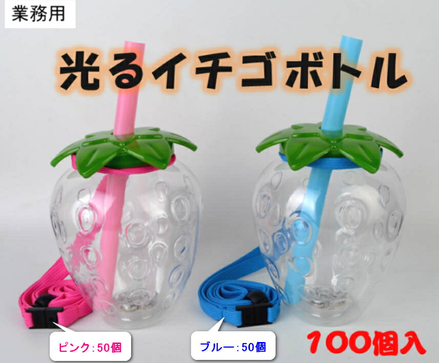 | 【100個入】光るイチゴボトル(ピンク:50個 ブルー:50個) 業務用 花火大会 タピオカ 文化祭 光る ボトル イベント お祭り パーティー 飲料容器 ドリンク容器 景品 電球ボトル※沖縄・離島・一部地域は追加送料がかかる場合があります。 | ||