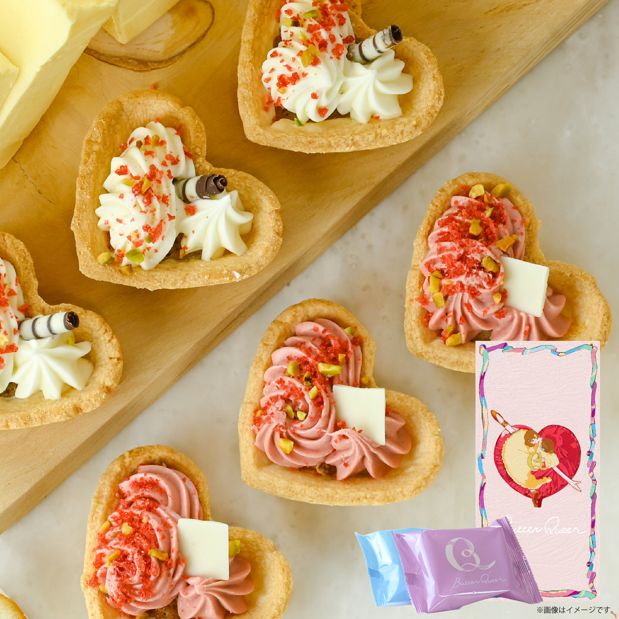 ご要望にお応えし遂に登場! 店頭イベントで大好評のスペシャルセットが楽天公式ショップで販売開始です。 看板商品のバターラングドシャ、 ストロベリー・バターの2種類が楽しめるバタータルトアソートに ブランド公式アンバサダー・宮田愛萌さんの大人気ノベルティ アクリルスタンド・マグカップ・トートバッグがついた豪華5点セット! バターの女王の世界観を楽しめる内容になっています。 さらに宮田愛萌さんの新規ビジュアルを使用した複製サイン入りポストカードをプレゼント。 ※現在開催中のバターの女王 購入特典ブロマイドプレゼントキャンペーン対象商品です。 ブロマイドは用意数に到達次第、予告なく終了することがあります。 ※特典ポストカードは、今後開催されるポップアップショップでの購入特典プレゼントラインナップに少数追加される予定です。 ※スペシャルセットは数量限定でのご準備です。