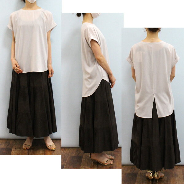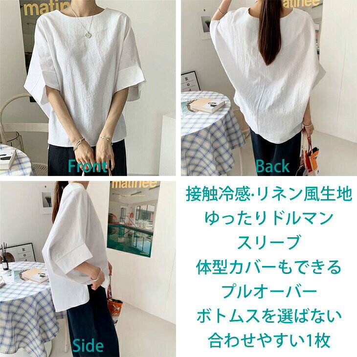 | ★ブラウス 接触冷感 5分袖 ラウンドネック 麻風 オーバーサイズ ゆるシルエット Tシャツ ナチュラル | ||