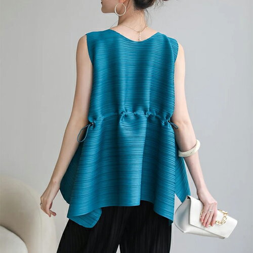 | カラフル プリーツ ギャザー ノースリーブ トップス《全8色》 | ||