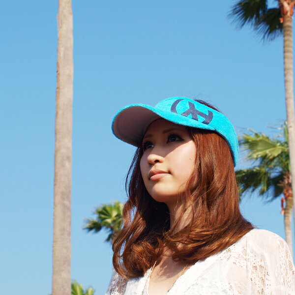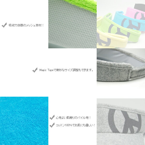 | レディース 女性 帽子 サンバイザー コットン 綿 パイル地 メッシュ ピースマーク スポーツ イエロー グレー グリーン ホワイト ブルー ピンク オレンジ | ||