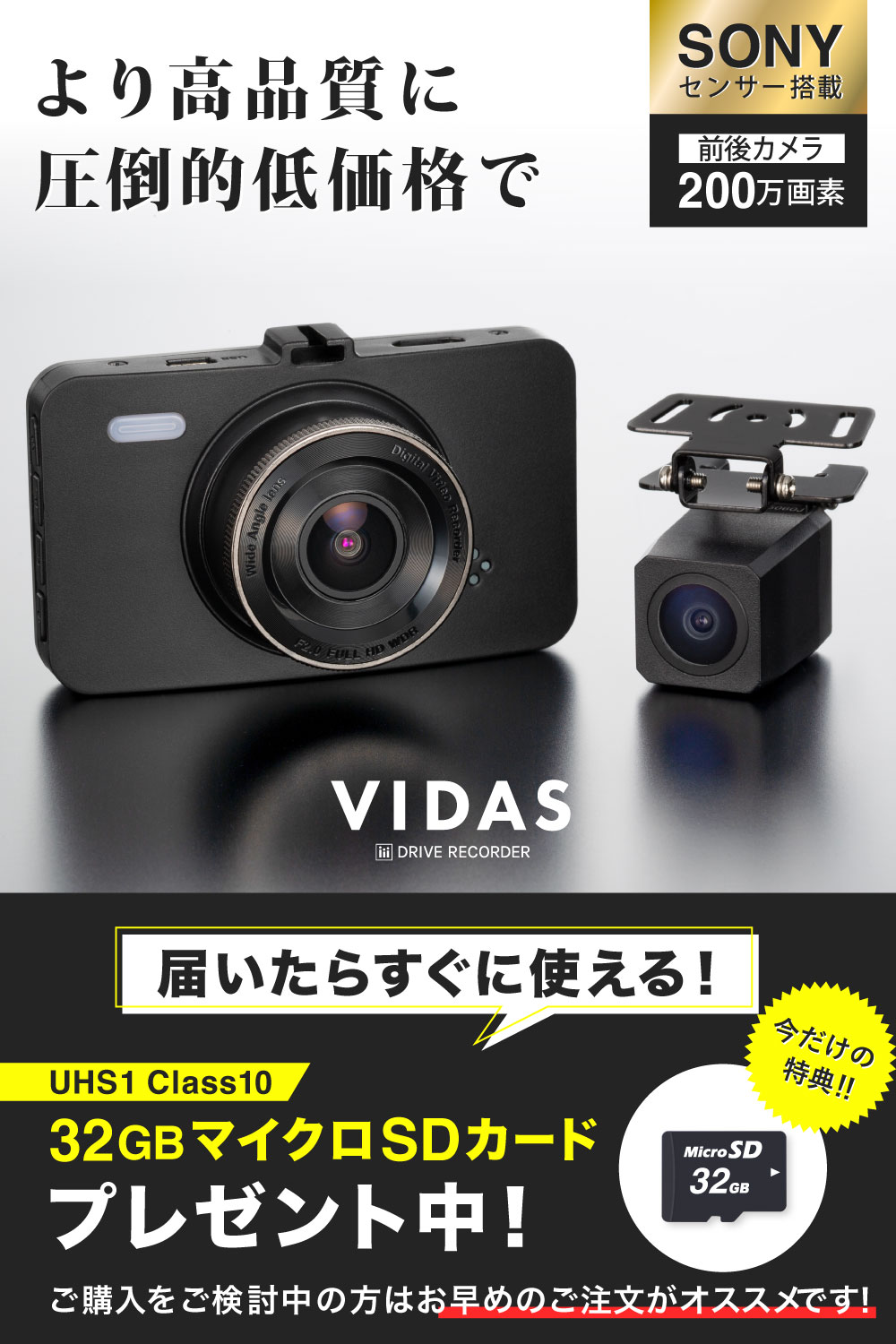 | 【 クーポン配布中! 】 〈 vidas 公式〉 ドライブレコーダー 前後カメラ ソニーセンサー 200万画素 ドラレコ フルHD 高画質 SONYセンサー GPS搭載 WDR 駐車監視 常時録画 対応 広角 ノイズ対策済 LED信号機対策 前後 前後2カメラ 人気 簡単 取り付け nd0001 | ||