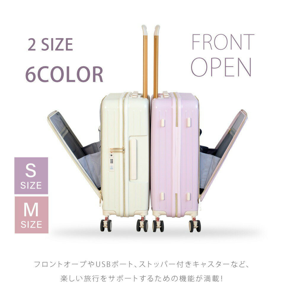 | ★フロントオープン 超軽量 Sサイズ 8輪 スーツケース キャリーバッグ USBポート付き 前開き キャリーケース ハードケース 旅行 かわいい 可愛い おしゃれ | ||