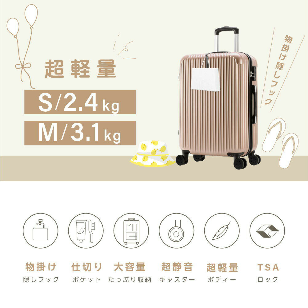 | 【10%OFFクーポンあり】「4サイズからお選べ SS/S/M/L おまけつき」キャリーケース スーツケース Mサイズ TSAロック Sサイズ 機内持ち込み 機内持込 SSサイズ Lサイズ キャリーバッグ 軽量 旅行カバン 超軽量 国内 出張用 可愛い 旅行バック かばん 2泊3日 3泊4日 | ||