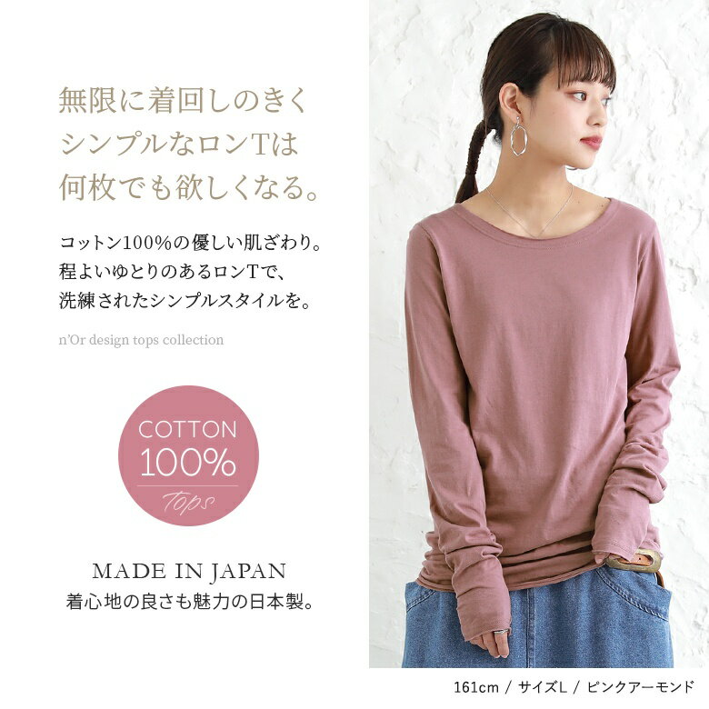 | 【感謝価格】ロンT ロングTシャツ レディース トップス インナー 長袖 カットソー クルーネック コットン 綿100% 国産 日本製 大きいサイズ お尻が隠れる 体型カバー 無地 春 夏 秋 冬 シンプル ルーズ チュニック レイヤード オシャレウォーカー※メール便可※【5】 | ||