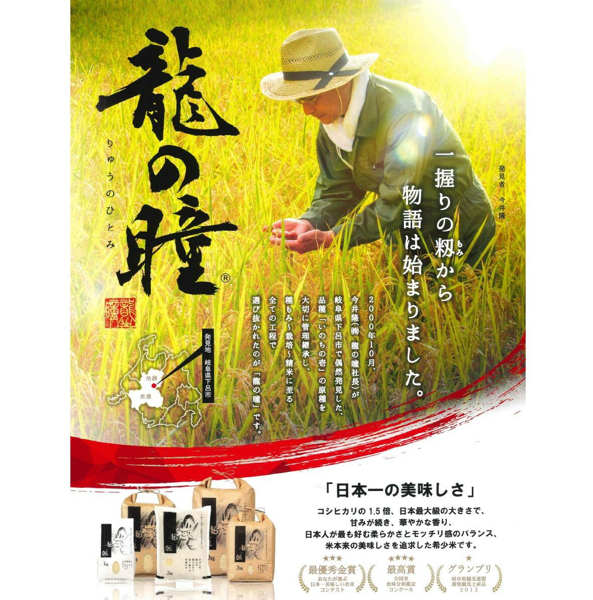 | 【新米入荷】龍の瞳 送料無料 『龍の瞳 認定米』岐阜県 飛騨高山産限定 特別栽培米 いのちの壱 令和6年産 一等米 精白米 2kg、3kg、5kg | ||