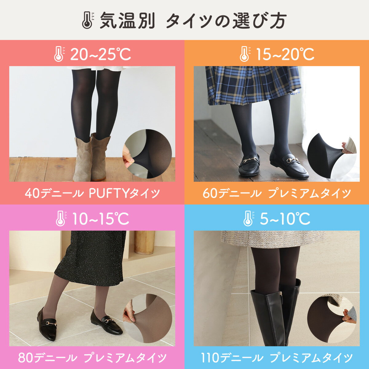 | ★透けにくくカラーが映える80デニールタイツ。 | ||