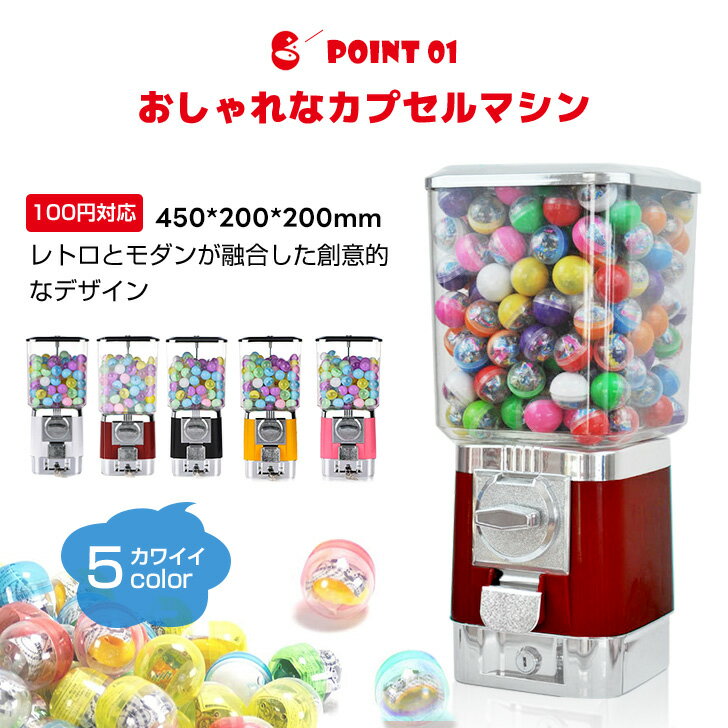 | ★100円硬貨用 業務用 本体 450*200*200mm レトロ カプセルマシン イベント ガチャガチャ カプセル100個プレゼント 赤色 白色 | ||