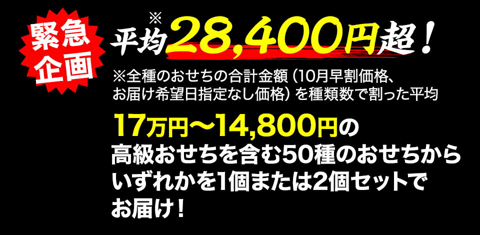 | ★毎年ランキング入賞!昨年度販売実績約18,000個!!他所では真似のできない豪華食材が多数盛り込まれたおせちをお買得価格で | ||