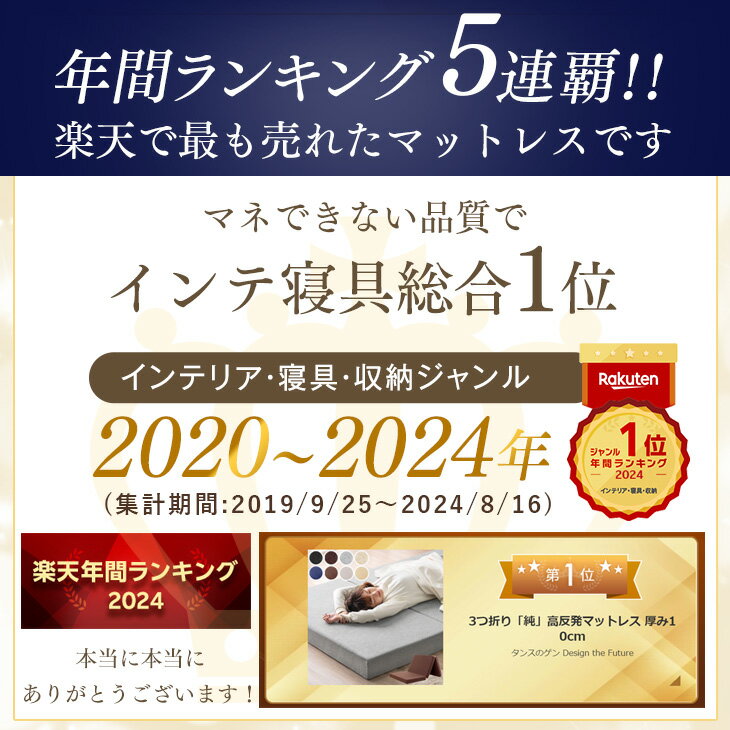 | 【20時~クーポン5%引】 【5年連続 確かな品質でインテ寝具総合1位】「純」高反発(R) マットレス 安心エコテックス 3つ折り 10cm 厚 メッシュ/パイル生地 折りたたみ ベッドマットレス シングル セミダブル ダブル 高反発マットレス 三つ折り 高反発 敷布団 | ||