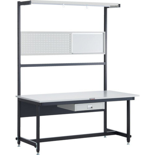 | ■TRUSCO CLM型高さ調節セルライン作業台 1500X800 コンテナ受・パネル・上棚・照明・薄型引出し1段付 CLM150069A(2463886)[法人・事業所限定][直送元] | ||