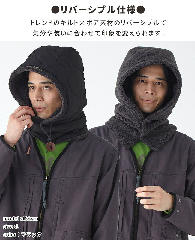 | ★キルト×ボアのリバーシブル仕様で気分や装いに合わせて印象を変えれる! スナップボタンで着脱簡単!ユニセックスで使える! | ||