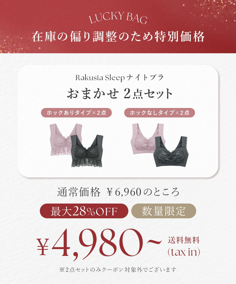 | 【30%OFFクーポン】12/3 LINEお友だち限定《NEW》福袋発売!2点で6,960円⇒4,980円〜美乳ナイトブラ ナイトブラ 夏 昼夜兼用 ブラジャー 授乳ブラ マタニティブラ 脇高 可愛い 大きいサイズ ノンワイヤー ラクシア ノンワイヤーブラ 授乳 送料無料【tu-hacci】 | ||