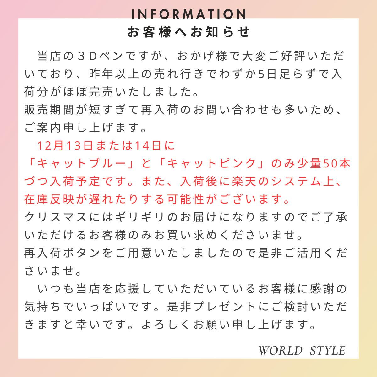 | 【年内最終入荷のこりわずか!】【楽天ランキング1位!】【フィラメント100m付+レビューでさらに25m!】低温3Dペン コードレス 3Dアート STEM 知育 育脳 立体工作 自由研究 ハロウィン クリスマス プレゼント 子供 誕生日7歳 8歳 9歳 10歳 11歳 12歳 13歳 | ||