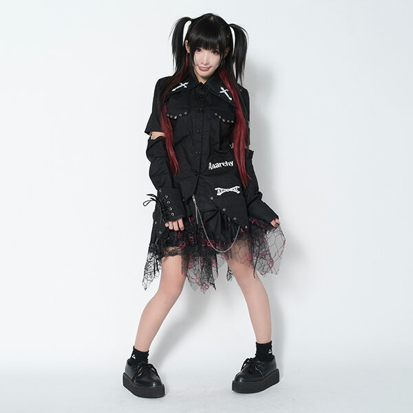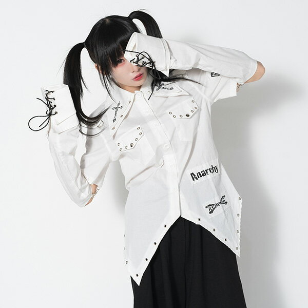 | ★ハードパンクな2wayシャツ。 パンク ロック ファッション V系 ヴィジュアル系 原宿 原宿系 長袖 半袖 2way シャツ レディース ダンス衣装 白 黒 | ||