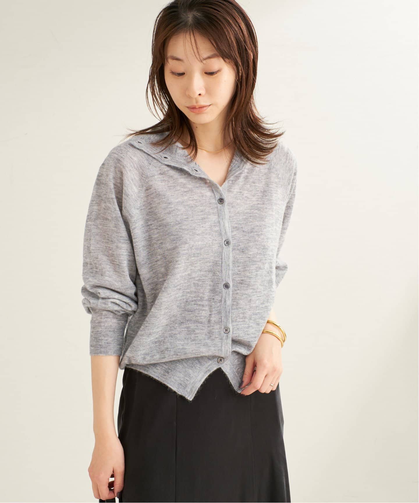 | plage 《予約》Alpaca Mix 2WAY ハイネックカーディガン プラージュ トップス ニット ブラウン グレー ホワイト【送料無料】 | ||