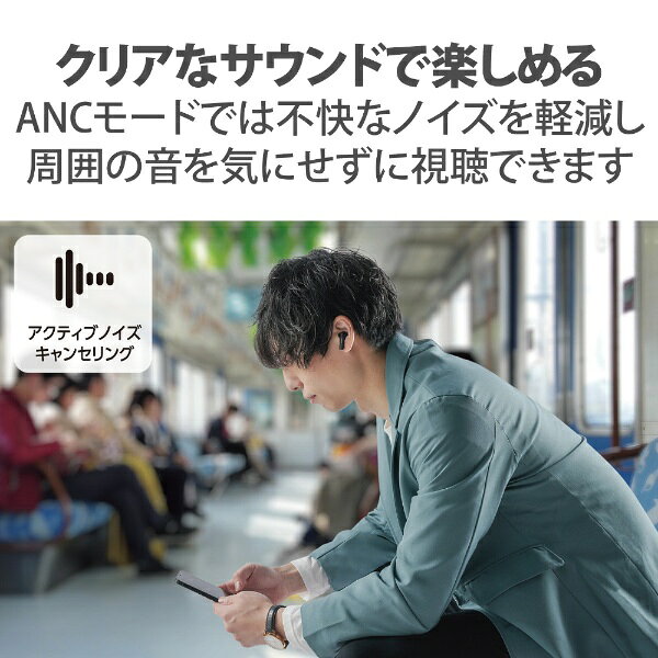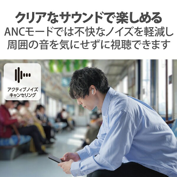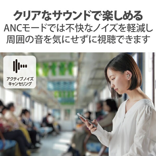 アクティブノイズキャンセリング(ANC)機能を搭載し、周囲の騒音を気にせず音楽を楽しめます。電車の走行音や話し声といったノイズを検知し、デジタル処理で効果的に軽減。雑音のないクリアな環境で、音楽に集中できます。