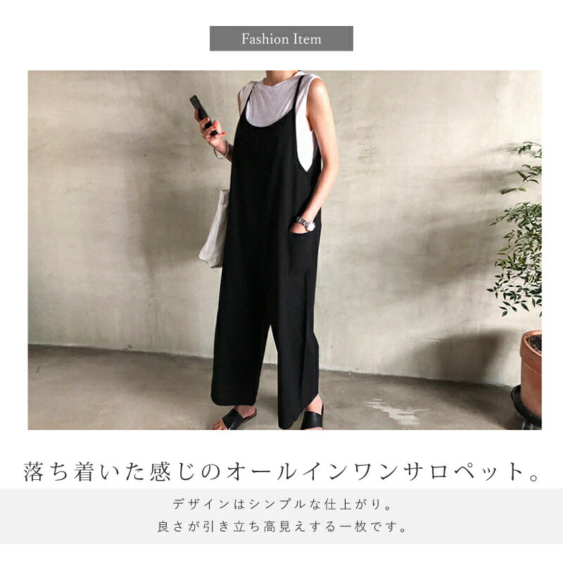 | [期間限定クーポンで2,580円] 楽天1位 ■ オールインワン サロペット レディース ワイドパンツ きれいめ 黒 大きめ 大きいサイズ ノースリーブ 無地 オーバーオール ロング 服 つなぎ ワイド シンプル ポケット Vネック 楽ちん 大人カジュアル 体型カバー | ||