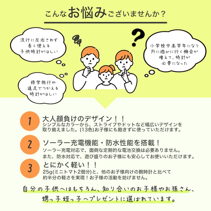 | 超軽量 CITIZEN シチズン Q&Q 腕時計 スマイルソーラー ソーラー 時計 ブランド キッズ キッズウォッチ かわいい シンプル アナログ 防水 ソーラー腕時計 女子 男子 女の子 男の子 小学生 中学生 ジュニア 子供 子ども 息子 娘 孫 キッズ腕時計 プレゼント 誕生日プレゼント | ||