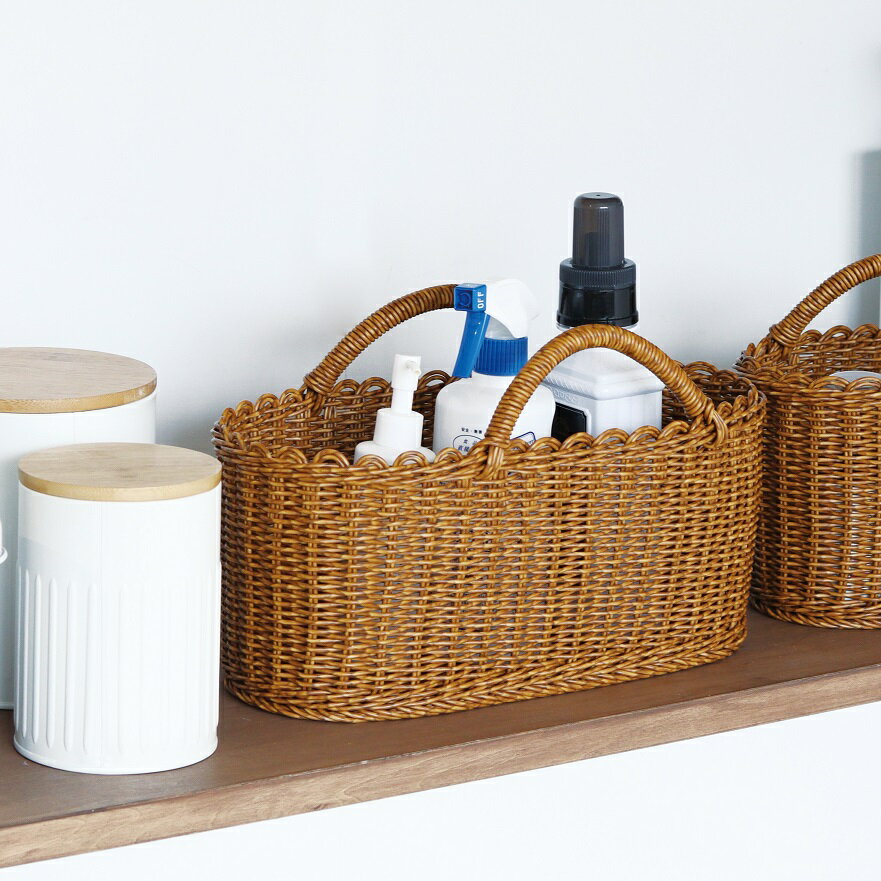 | ユティルオーバルハンドルバスケットL【洗えるバスケット バスケット かご フェイク 水洗い可 洗えるかご トレー 収納ボックス】 | ||