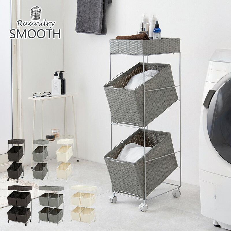 | ランドリーラック【SMOOTH】スムース スクエア型バスケット2個 斜めタイプ 幅28cm(ランドリーバスケット ランドリー収納 ランドリーワゴン 洗濯かご 2段 おしゃれ シンプル 脱衣所 洗面所 ラック キャスター付き 縦型 スリム 防水) | ||