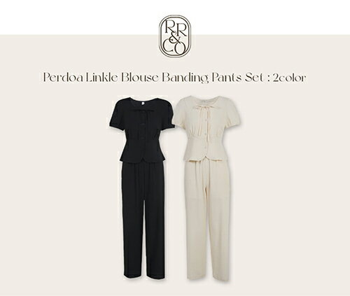 | ★リンクルリボンUネックブラウス&ストレートパンツSET・p679347 | ||
